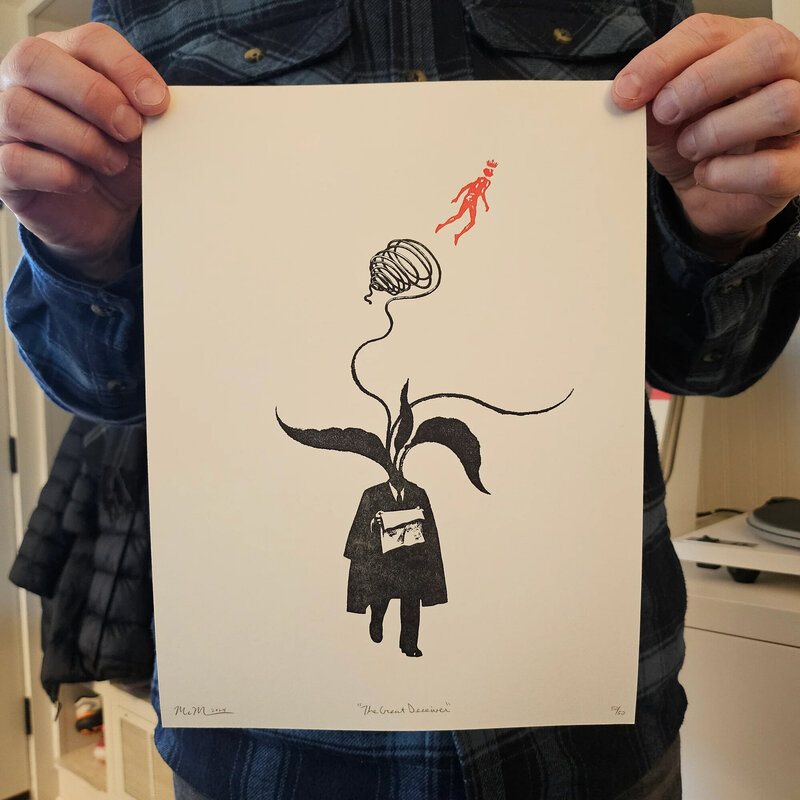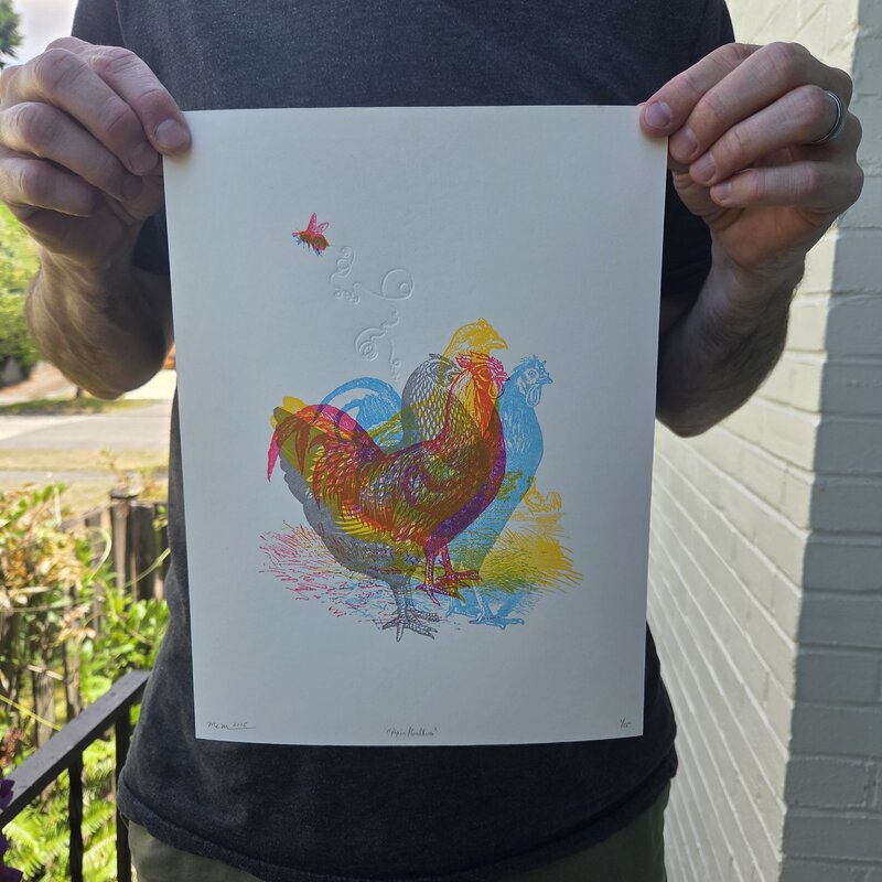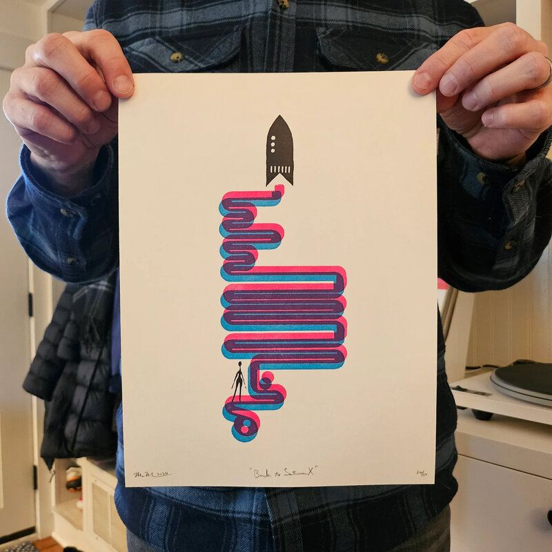 Design technique inspired by Pacific Northwest designers such as Jeff Kleinsmith, Art Chantry, and Mike King. Primarily assembled from obscure source material manipulated and collaged into pleasing shapes and printed with limited fields of overlapping colors. Newer prints available to purchase here.